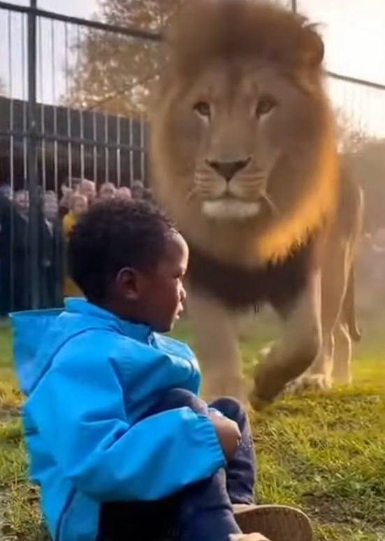 Ethan reached out his tiny hand. The lion responded by gently placing his enormous paw on the ground, inches away — a silent gesture of calm. The crowd went silent. Even the guards stopped in their tracks.