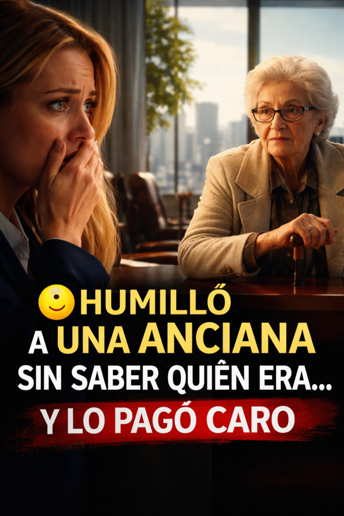 Ante sus ojos, la escena había cambiado por completo. La mujer frágil que minutos antes parecía a punto de caer en el ascensor ya no existía. En su lugar, estaba sentada una figura imponente, recta, serena, con una autoridad tan silenciosa como aplastante. No era una anciana indefensa: era una líder nata.