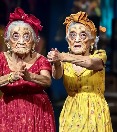 When the two elderly sisters stepped onto the stage, the world seemed to pause. Their trembling hands clasped each other tightly, as though afraid time might separate them again. They wore vibrant dresses — one in warm crimson, the other in sunny yellow — colors that reflected not just their personalities but the countless memories stitched into their shared lives.