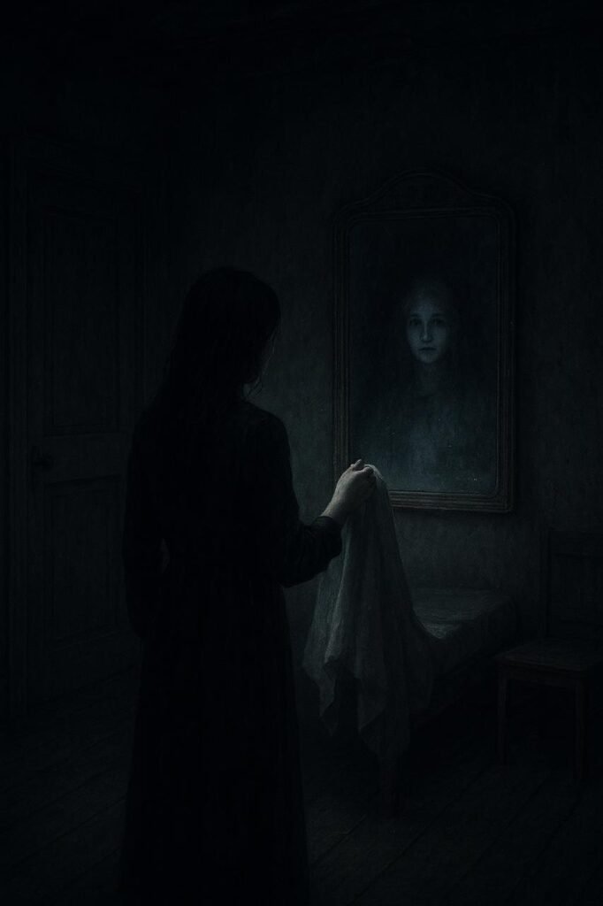 The air grew cold. The mirror’s cracks glowed faintly like veins of light.