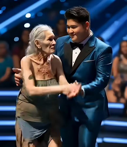 The man in blue smiled proudly as he guided her across the stage. He didn’t lead her out of pity; he danced with her as an equal. For those few minutes, they weren’t old and young, poor and rich — they were simply two souls reminding the world that beauty never truly fades.