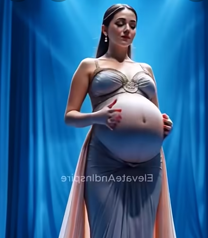 The stage lights glowed softly as the curtains parted, revealing a young woman in a flowing gown that shimmered like moonlight. Her hands rested gently on her round belly, a silent announcement to the audience that she carried not just herself, but another life within her. A hush fell over the crowd. Nobody expected to see a woman, visibly pregnant, stepping into the spotlight with such confidence and grace.