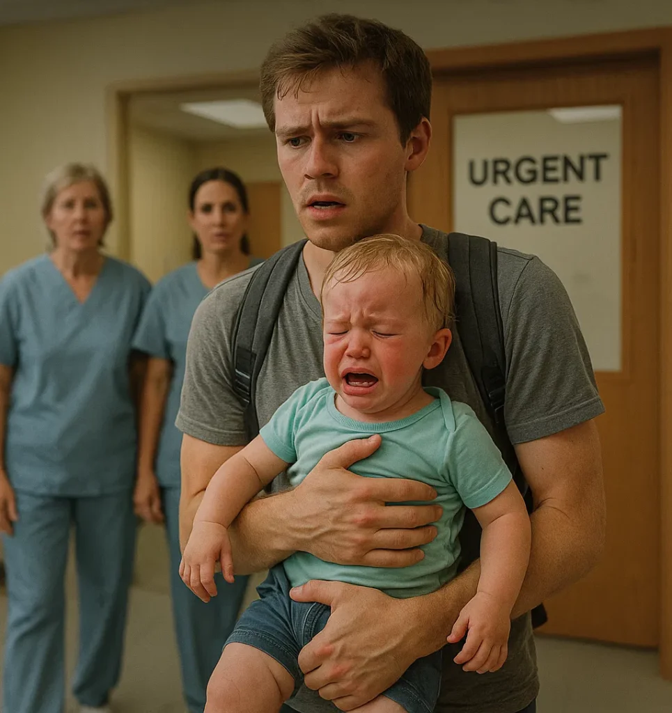 Lucas cradled him tightly and ran, fast as he could, toward the urgent care center just down the street. The baby whimpered faintly against his chest.
