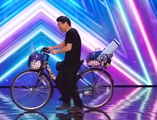 He rolled his bicycle gently onto the stage, packed with baskets, water bottles, scraps of wire, and strange contraptions. The judges looked puzzled. The audience murmured, curious but unsure. Was this a delivery gone wrong? A prop for comedy? No one quite knew what to expect.