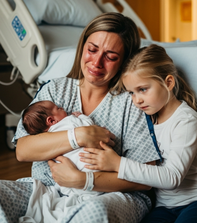 The couple’s 10-year-old daughter, Lily, lingered quietly near the window. She had been begging to meet her baby sister for weeks — talking about helping with diapers, choosing matching outfits, and even singing lullabies. Laura expected squeals of joy, maybe playful jealousy, or endless chatter. But Lily just stood there, her little hands trembling around the phone she clutched tightly.