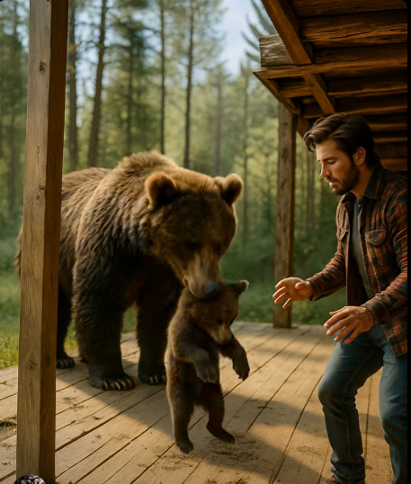 I stepped outside and saw a huge bear standing on the porch, holding a cub in its jaws: As I stared at them in shock, the mother bear gently set the cub down on the ground — and then did something completely unexpected