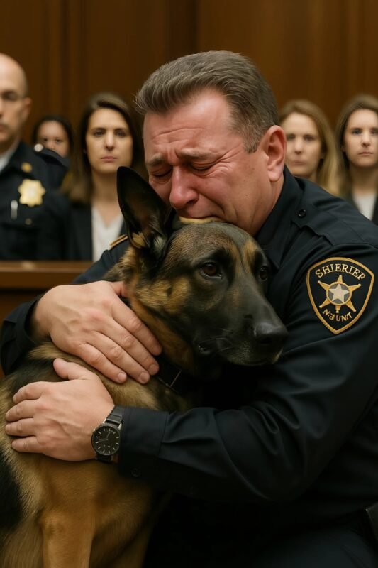 A murmur swept through the room. The judge frowned and looked at the prosecutor. He hesitated for a moment, then nodded. A few moments later, the door opened and Rex entered — a German shepherd with eyes more human than many people’s. He walked with purpose, as if he knew this was no ordinary day.