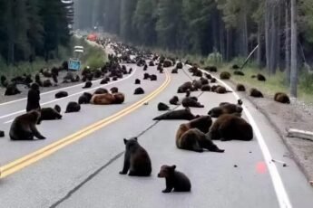 We were driving home after work and right in the middle of the street saw a dozen bears: we were shocked