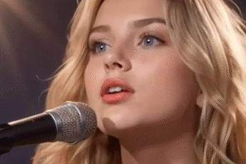 The studio was silent except for the soft hum of the lights.A young girl stood before the microphone