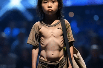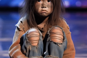 Under the blinding lights of the stage, a tiny figure emerged — barefoot, trembling, and dressed in torn clothes.