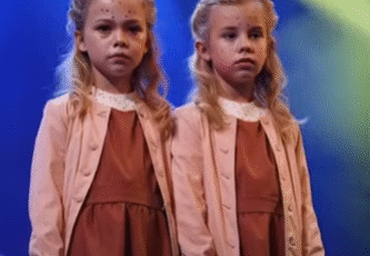 The moment the twin girls stepped onto the stage, the crowd hushed. They were dressed in matching copper